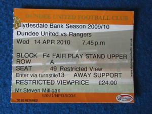 Dundee United V Glasgow Rangers 14 4 10 Ticket Ebay