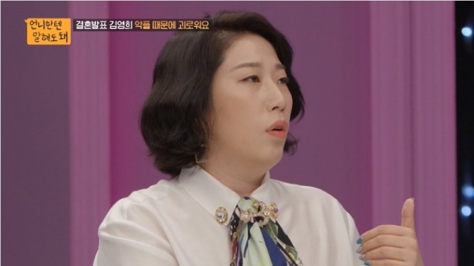 개그우먼 김영희가 10살 연하의 전 프로야구. 개그우먼 김영희가 결혼 발표 이후 받은 악플로 인한 스트레스를 고백했다.